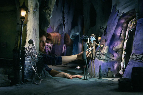 Animator ANTONY ELWORTHY works with two of the characters for Warner Bros. Pictures’ stop-motion animated fantasy “Tim Burton’s Corpse Bride,” starring the voices of Johnny Depp and Helena Bonham Carter.
